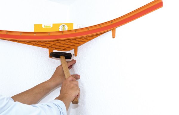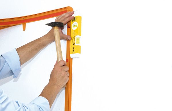 Fixieren Sie die obere Wandleiste waagrecht mit einem Nagel.